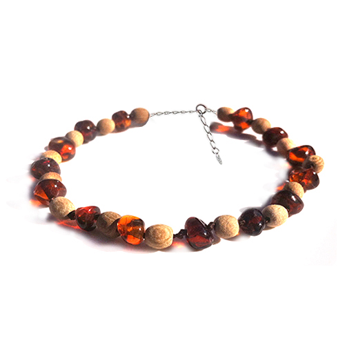 Pulsera de tobillo elaborada con Ámbar del Mar Báltico color rojizo con madera.