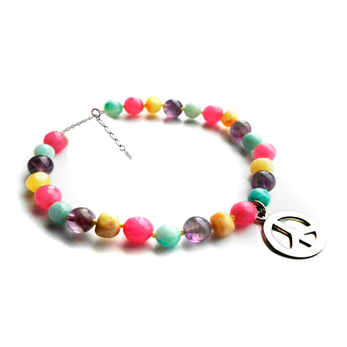 Dulce y delicado modelo, que gracias a la combinación de las piedras naturales con las que está diseñado, promoverá en quien lo use, la calma de las emociones violentas y la rabia, promover claridad en la mente y reducir temores, así como favorecer la intuición, inspiración y creatividad. Mejorar la conexión con uno mimo y con los demás. El concepto de Amor y Paz se une a este diseño exclusivo para recordarnos todos los días que solo habrá paz en nuestro corazón solo si actuamos desde el Amor y desde la Paz.